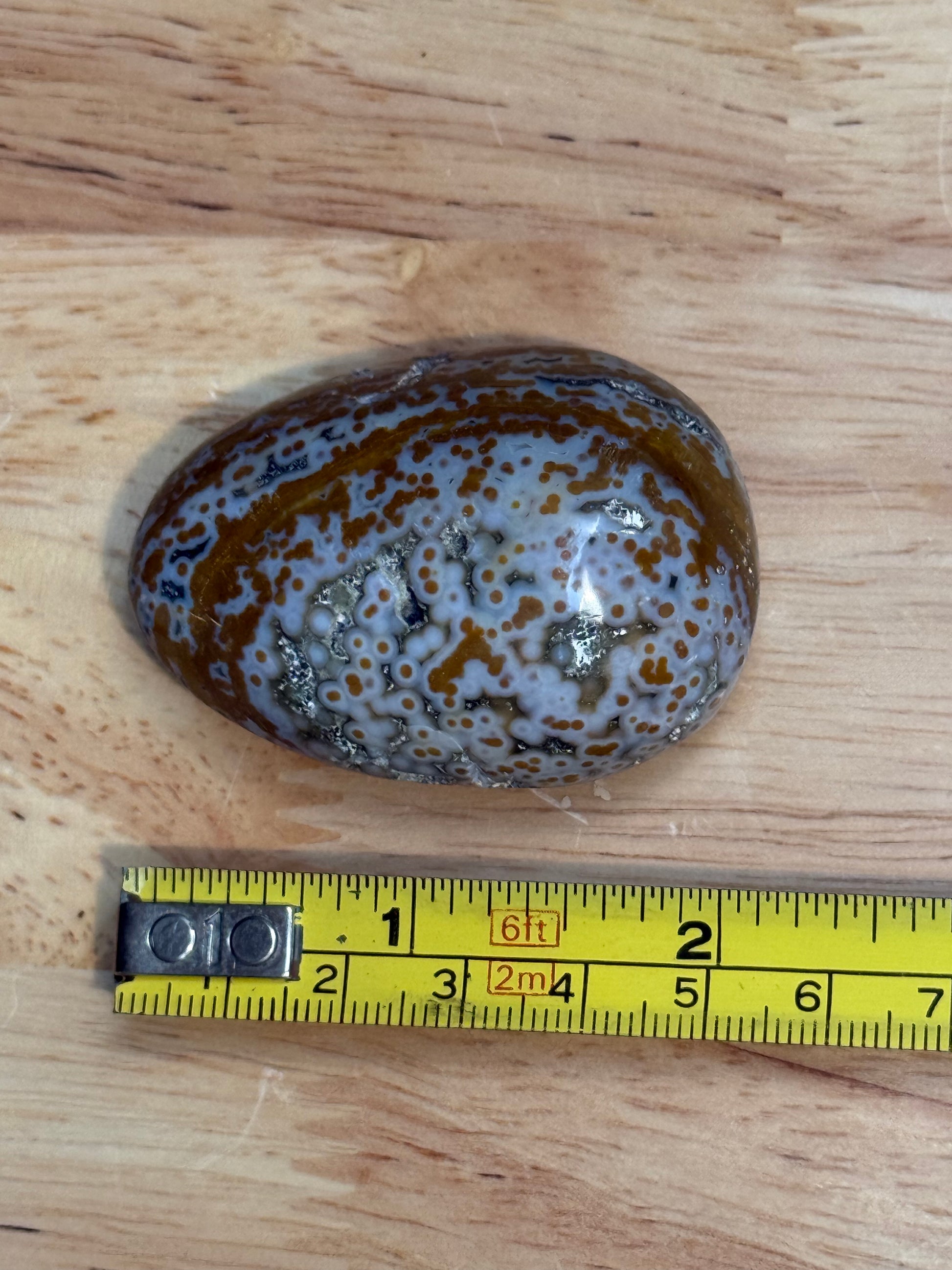 Ocean Jasper is a rare and highly sought-after orbicular jasper, found exclusively in Madagascar. Known for its vibrant swirls, orb-like patterns, and occasional druzy pockets, each palmstone is completely unique. Smoothly polished to fit in the palm of your hand, these stones are ideal for display, meditation, or as a grounding touchstone throughout the day.