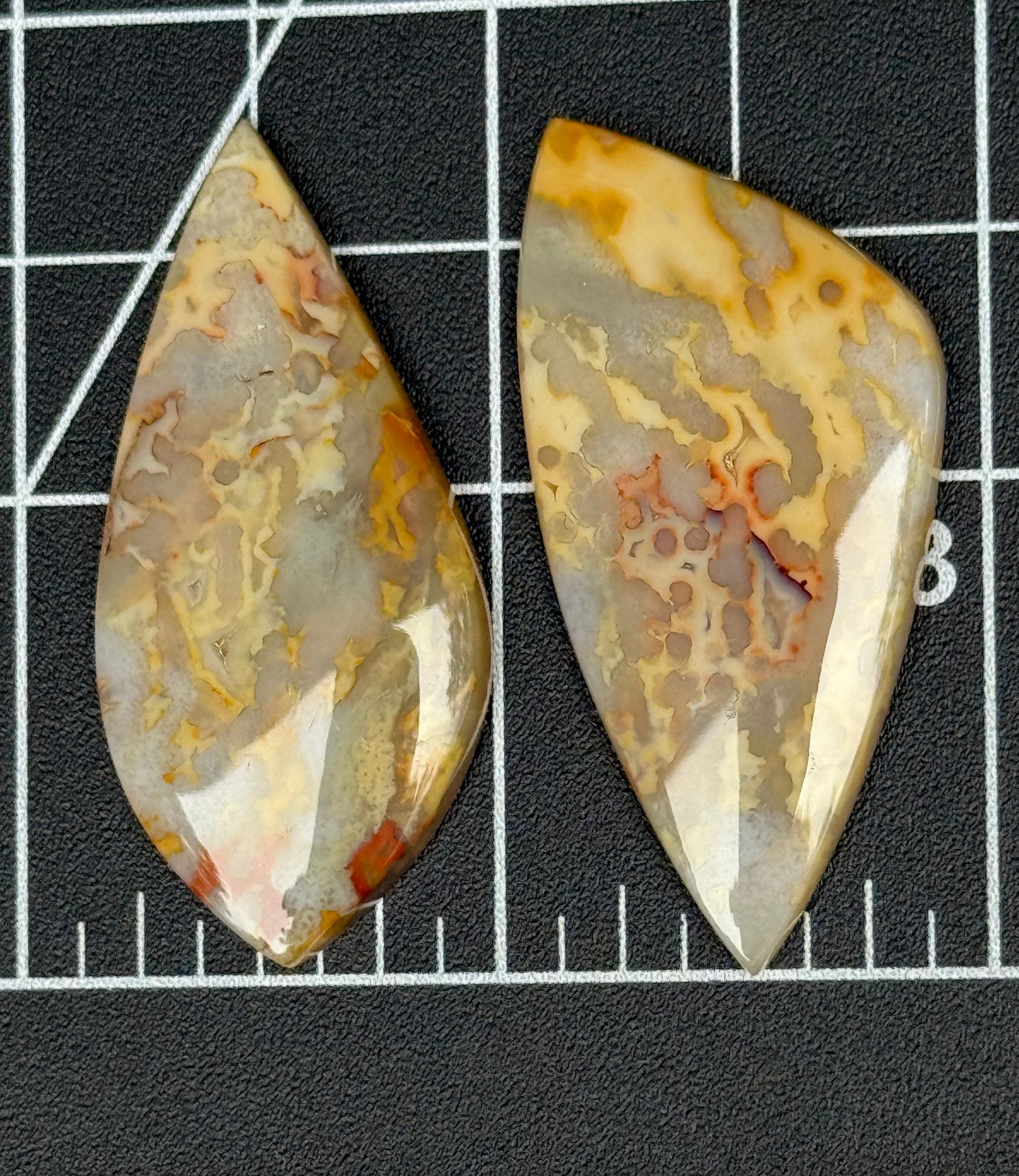 This Sumatran Agate cabochon pair reflects the volcanic soul of Indonesia’s island landscapes. The cabochons share complementary banding and color with subtle variations of cream, smoke, and earthy amber that reveal their shared origin while maintaining individual character.